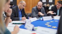 Moderiert wurde jeder Tisch von einer/m Fachexpert/in aus dem Auswärtigen Amt und einer/m Tischmoderator/in aus dem Netzwerk des Co-Gastgebers, der Stiftung Mercator.